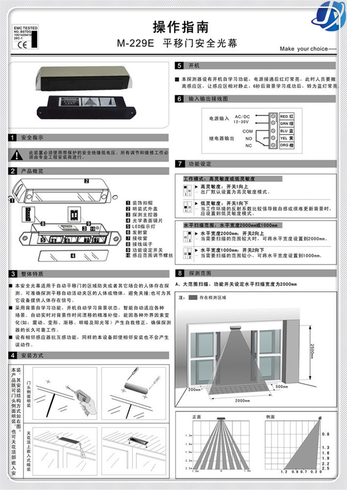 嘉鑫平移門安全光幕CNB-229E 全國聯(lián)保 上門安裝 30天質(zhì)量 問題免費退換