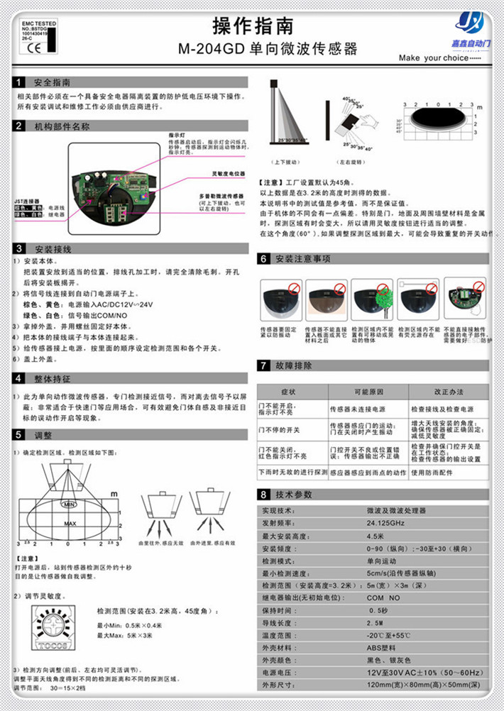 嘉鑫感應(yīng)門(mén)單向微波感應(yīng)器CNB-204GD 全國(guó)聯(lián)保 上門(mén)安裝 30天質(zhì)量 問(wèn)題免費(fèi)退換
